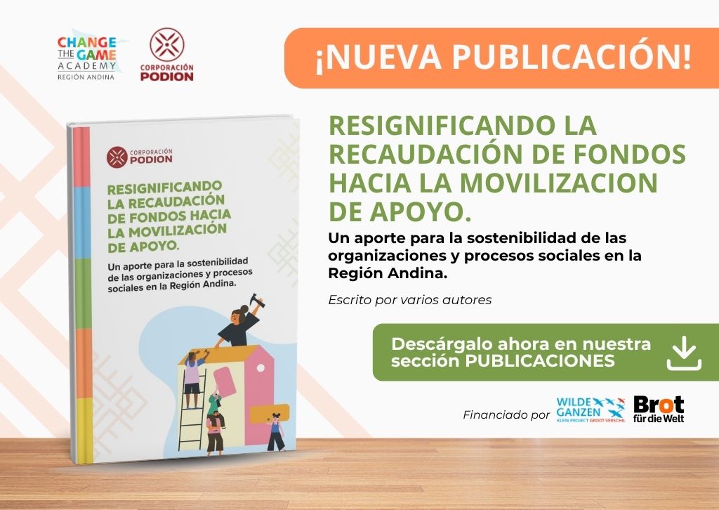 En un contexto de transformación global y de cambios profundos en la cooperación internacional, la Corporación PODION, en articulación con Change the Game – Región Andina y con el apoyo financiero de las agencias de cooperación Wilde Ganzen y Brot für die Welt, presenta Resignificando la recaudación de fondos hacia la movilización de apoyo.